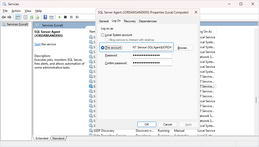 After you’ve registered and installed Data Generator for Oracle, you may want to automate the tool’s work with the help of the SQL Server Agent. Before configuring the process, ensure that the Agent is running under the same account that the instrument’s license is registered to, as discrepancies can cause permission issues. For this, follow these steps: