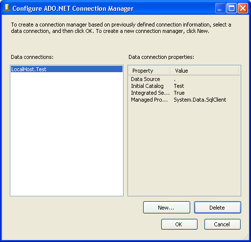In the Configure ADO.NET Connection Manager dialog, click New....