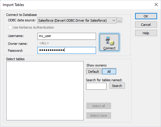 10. In the Select tables section, expand the tree and select the tables you want to import.