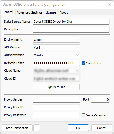 - Select Devart ODBC Driver for Jira and click Finish. The driver setup dialog will open.