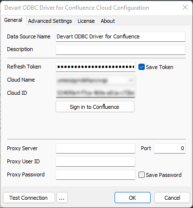After installing the driver, create a DSN for Confluence Cloud in the ODBC Data Source Administrator.