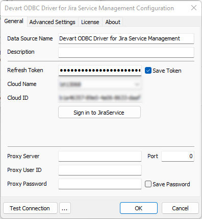After installing the driver, create a DSN for Jira Service Management in the ODBC Data Source Administrator.
