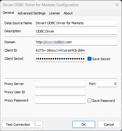 - Select Devart ODBC Driver for Marketo and click Finish. The driver setup dialog will open.
