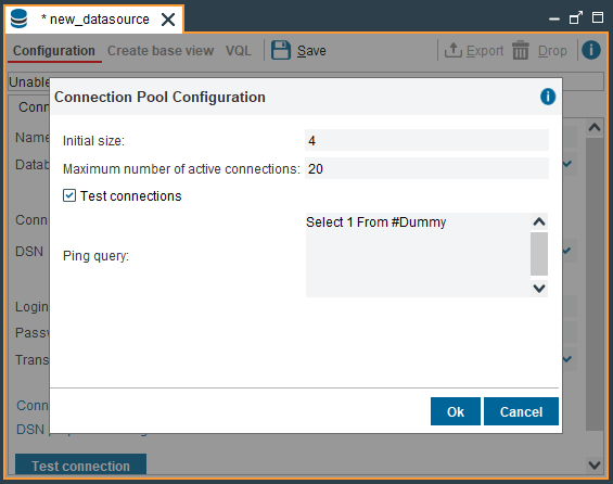 In Ping query, change Select 1 to Select 1 From #Dummy, then click Ok.