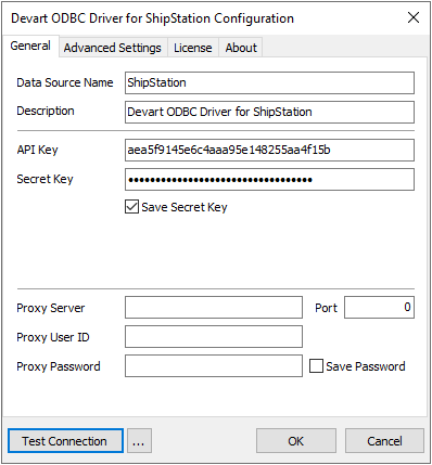 After installing the driver, create a DSN for ShipStation in the ODBC Data Source Administrator.