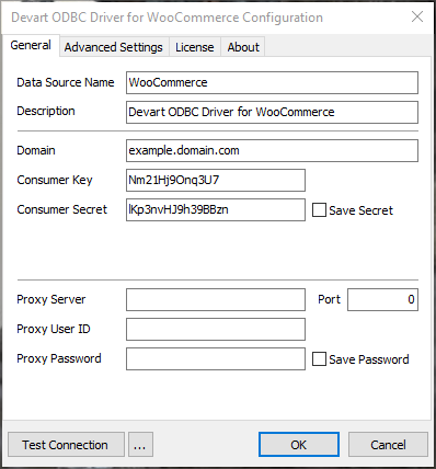 - Select Devart ODBC Driver for WooCommerce and click Finish. The driver setup dialog will open.
