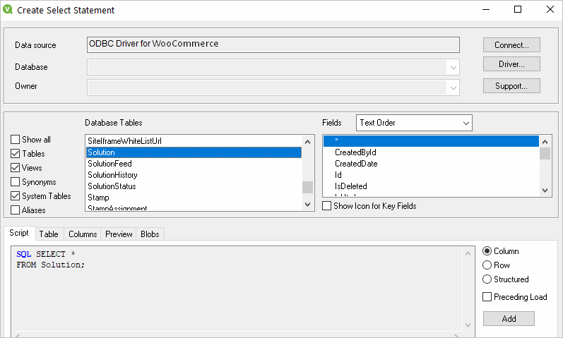 Connecting to WooCommerce from QlikView using ODBC Driver for WooCommerce