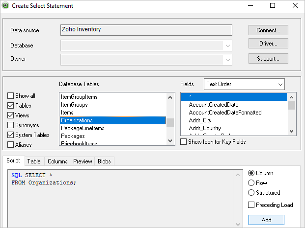 Connecting to Zoho Inventory from QlikView using ODBC Driver for Zoho Inventory