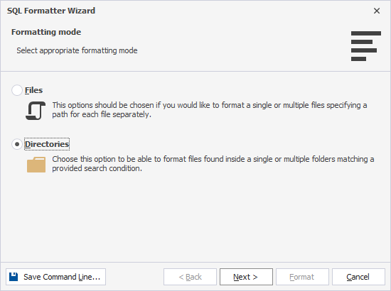 2. On the Formatting mode page of the wizard, select the Directories mode and then select Next.