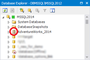 After the database is linked, it appears in Database Explorer with the source control icon: